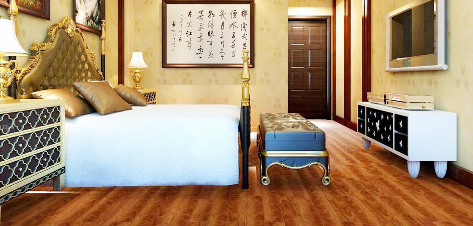 3、整體試鋪:調配地板的色差。可將花紋色調一致的地板放在客廳、過道或明顯處,將略有差別的放在家具底下或拐角處,以求整體的美觀協調。
