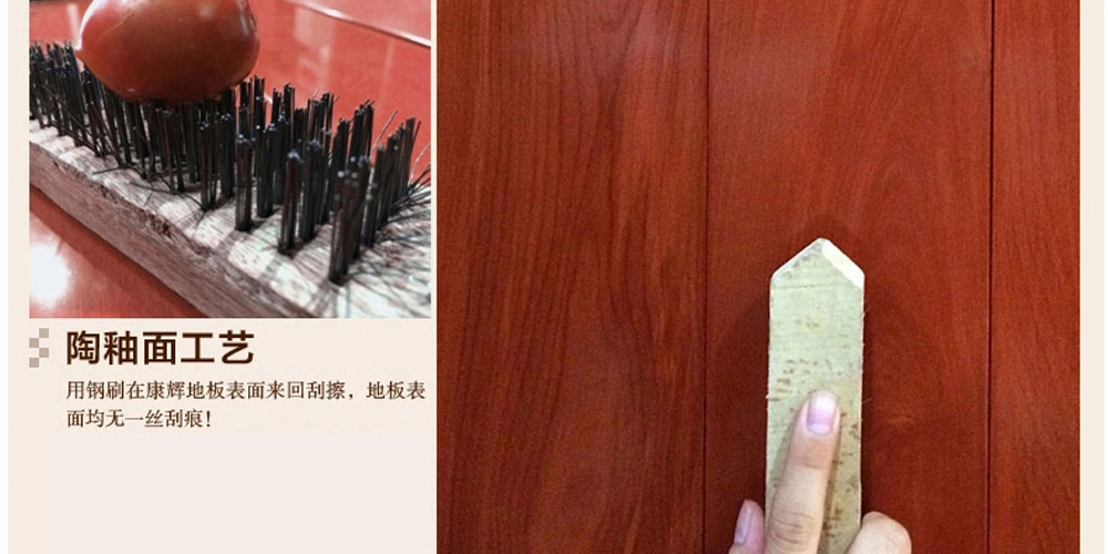 用鋼刷在玉林之源地板表面來回刮擦,地板表面均無一絲刮痕!超強耐污,油性記號筆的記號很難去除,涂在玉林之源地板上的油性記號筆的污漬用衛生紙輕輕一擦馬上就恢復光亮如初,絲毫不油墨的痕跡。采用優質環保油漆,締造優質生活,全力保護您家人的健康,為您營造一個實木健康之家,光澤與光影的交織變幻,感受視覺盛宴的同時感受不凡的尊貴氣質!